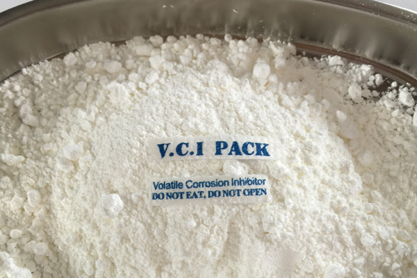 氣相防銹粉末多種特制的氣相緩蝕劑原料按一定配比均勻混合加工而成,具有水溶性,是一種新型的氣化性防銹材料。在密閉空間內,VCI經氣化揮發(fā)到金屬的每個角落,吸附在金屬表面形成致密保護膜層從而起到防銹的作用